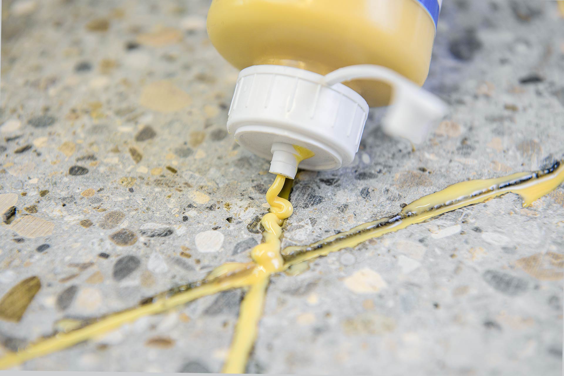 Savý podklad, napr. betón alebo cementový poter, musí byť najskôr očistený od zložiek znižujúcich priľnavosť a pripravený na ďalší náter. Zložky A a B sa zmiešajú v priloženom praktickom balení. Zložka B sa pridá ku zložke A v dostatočne veľkej rozprašovacej fľaši a potom sa dôkladne pretrepe. Vyplnenie trhliny zmiešaným materiálom sa vykoná veľkoryso a úplne, aby nízkoviskózna živica mohla dobre preniknúť do pórov, trhlín a kapilár.
